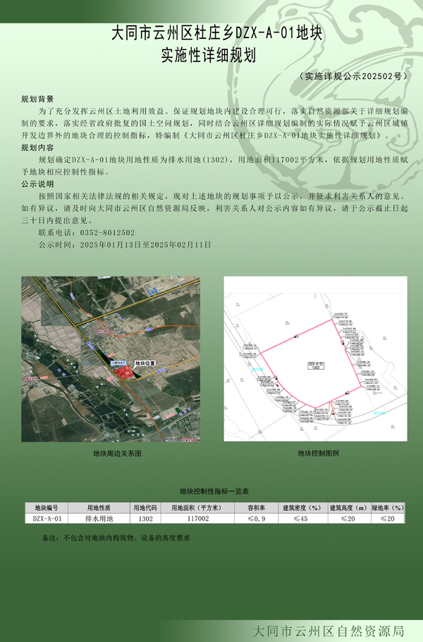 大同市云州區杜莊鄉DZX-A-01地塊實施性詳細規劃