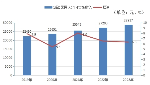 圖10 2019年—2023年城鎮居民人均可支配收入情況
