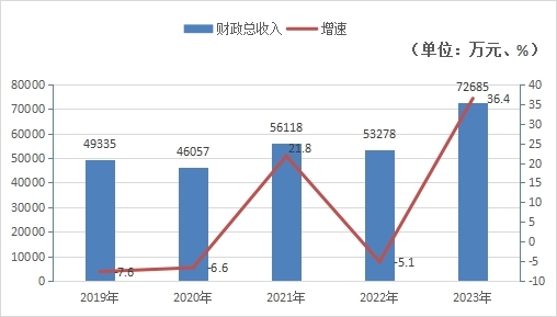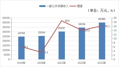 2023年,全區全年完成一般公共預算收入40085萬元,比上年增加5549萬元,增長16.1%。其中:稅務部門完成22393萬元,比上年增加4584萬元,增長25.7%,非稅收入完成17692萬元,比上年增加965萬元,增長5.8%。