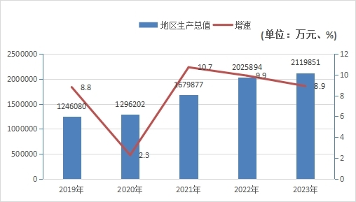 圖1 2019年—2023年地區生產總值及增速