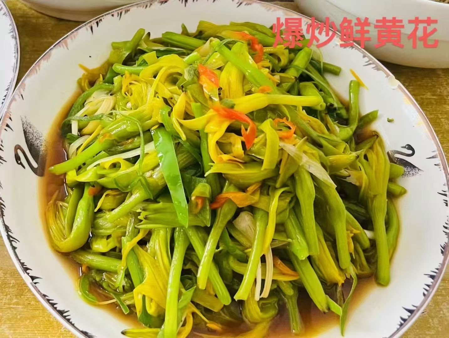 黃花,又名萱草,古稱忘憂草,屬百合科.是多年生宿根草本植物。它夏季開放,花簇牛于莖頂,花朵呈圓錐形,其花蕾肉質肥厚,味道鮮美,是宴客佳肴,既可與肉類同炒,又可與蛋類同燒。當其含苞未放時,將花蕾摘后蒸曬、烘干,形似針狀,色澤余黃,俗稱“金針”,是烹調佳肴的上等佐料,金針湯則更是味道鮮美.富于營養。大同地區種植黃花歷史悠久,特別是城東的云州區,白占便有“黃花之鄉”之稱,這里不僅在田野上成片種植,而且在房前屋后、路旁村邊到處都栽種著黃花。這里的黃花顏色純匯,角長肉厚,油大脆嫩,爽口味美,是山西外貿出口的主要商品。